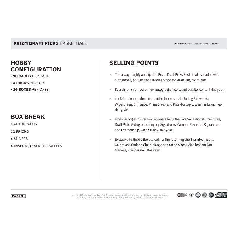 - The always highly anticipated Prizm Draft Picks Basketball is loaded with autographs, parallels and inserts of the top draft-eligible talent!