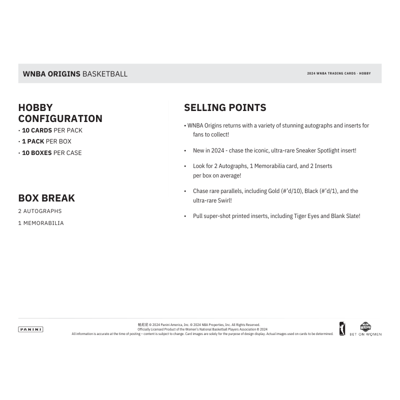 - WNBA Origins returns with a variety of stunning autographs and inserts for fans to collect!
